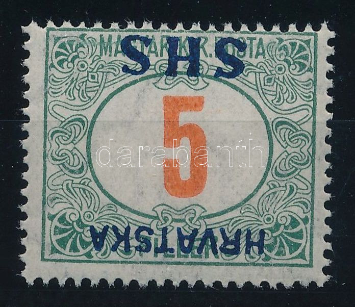 SHS 1918 Portó 5f fordított felülnyomással, Bodor vizsgálójellel