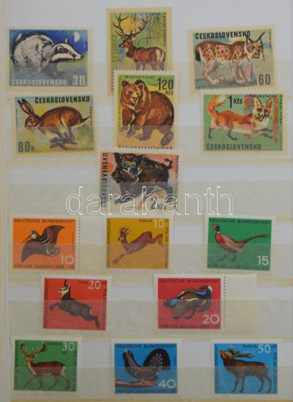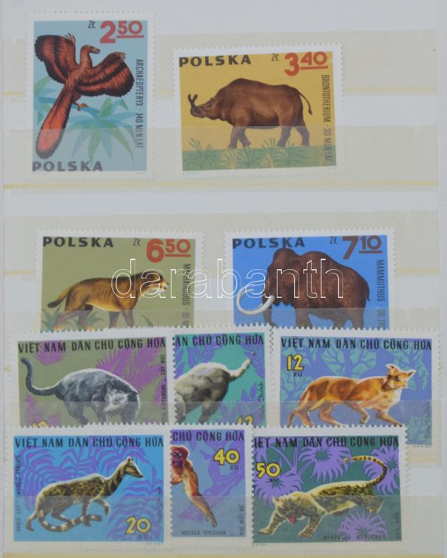 41 db közepes méretű berakó, bennük régi és modern magyar és külföldi bélyegek az egész világból. Érdekes anyag sok tengeren túlival, hullámkarton ládában!