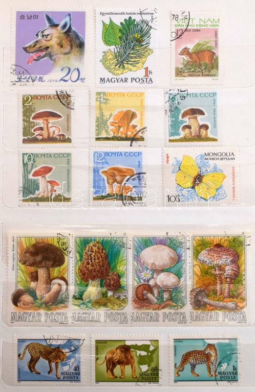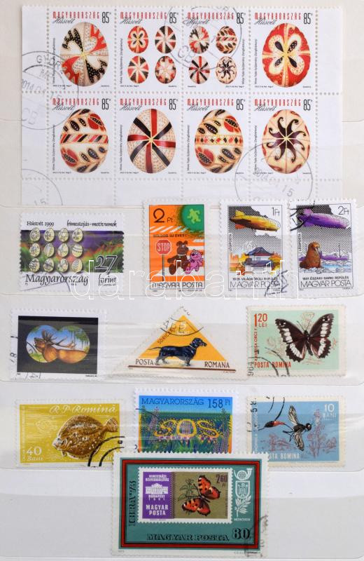 Magyar és külföldi bélyegek vegyesen 2 db A4, 6 db közepes és 3 db kis berakóban, bennük sorok, blokkok, 3 dimenziós bélyegek, szép motívumok. Javarészt pecsételt színes anyag.
