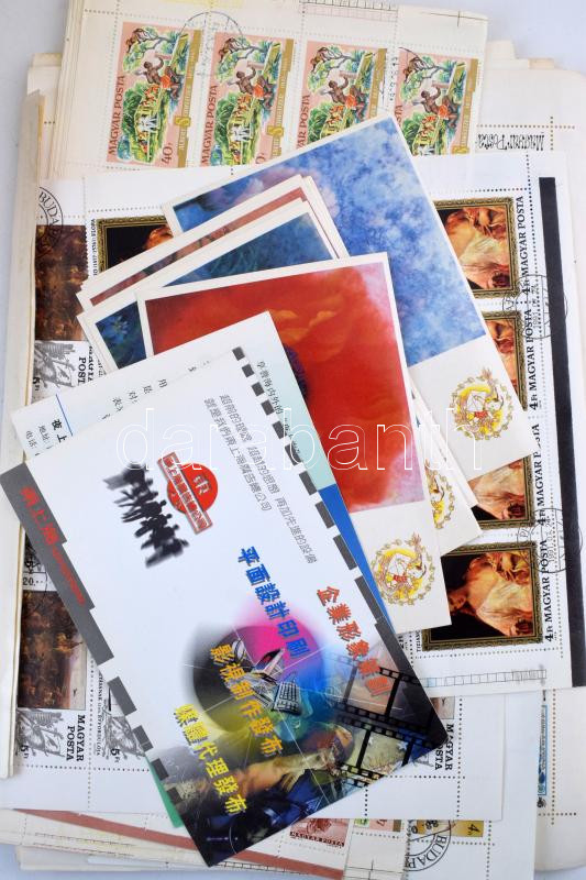 Vegyes magyar és külföldi tétel, benne magyar bélyegek, gyűjteményrész, ívek, ívdarabok, vegyes külföldi bélyegek, tasakos rendezőkben, áztatottak, gyűjtemény kezdemények, üres berakók stb. nagy dobozban. Érdemes belenézni!