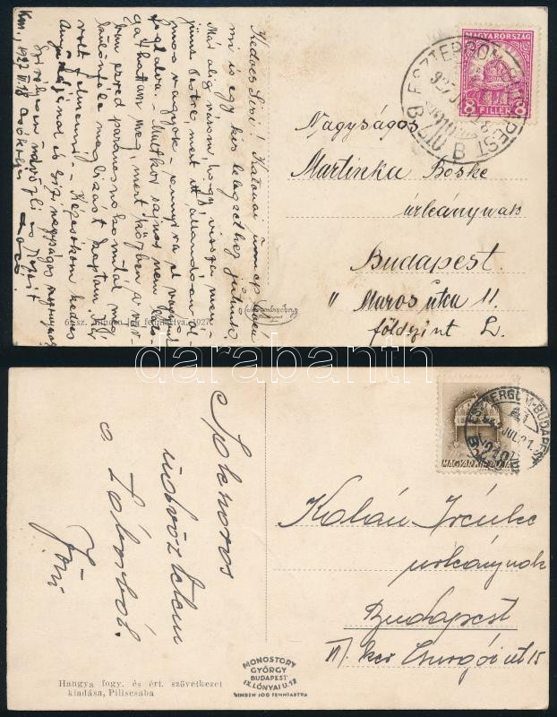 1927 + 1942 2 db képes levelezőlap "ESZTERGOM-BUDAPEST / 218 B" mozgóposta bélyegzéssel
