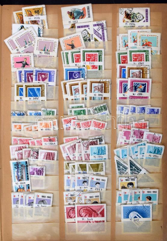 Kb 7.000 db magyar bélyeg tízesekben a krajcáros időszaktól az 1960-as évekig, régi hagyatékból rendező berakóban