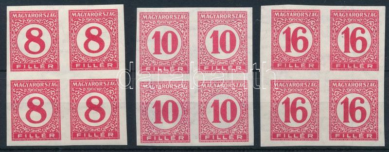 1929 Pengő-filléres portó II. 3 értékes vágott sor vékony papíron négyestömbökben (60.000)
