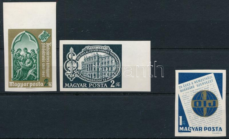 1967-1971 Évfordulók - Események 2 klf vágott ívszéli bélyeg + 25 éves a Nemzetközi Újságíró Szervezet vágott bélyeg (1Ft gumihibák / gum disturbances)