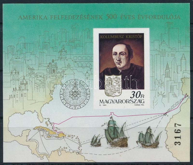 1991 Amerika felfedezésének 500. évfordulója vágott blokk (12.000)
