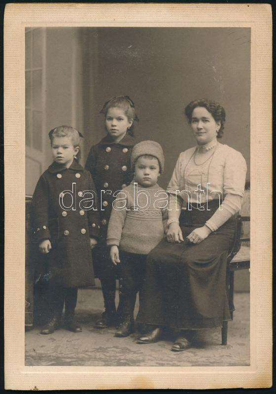 1919 Anya gyermekeivel, keményhátú fotó Weitzmann bécsi műterméből, 17×12 cm