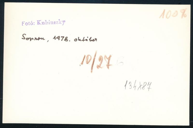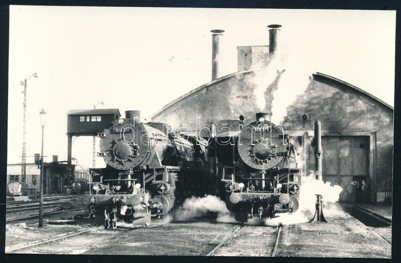 1978 Sopron, 520.020 és 520.075-ös mozdonyok, hátoldalon feliratozott fotó, Kubinszky felvétele, 9×14 cm