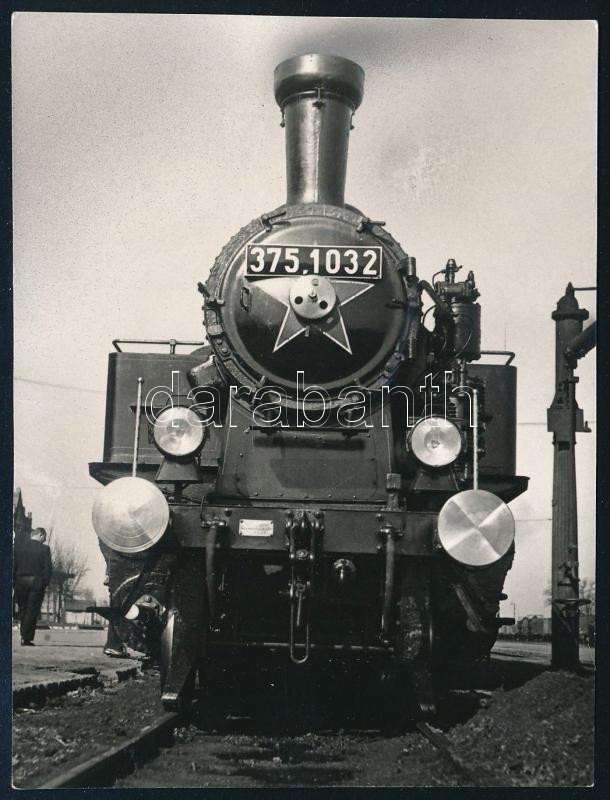A MÁV TV. osztályú, később 375 sorozatú gőzmozdonya, Magyar Királyi Állami Vasgyárak egyik legelterjedtebb mellékvonali mozdonytípus, reprodukciós előhívás, 11×8,5 cm