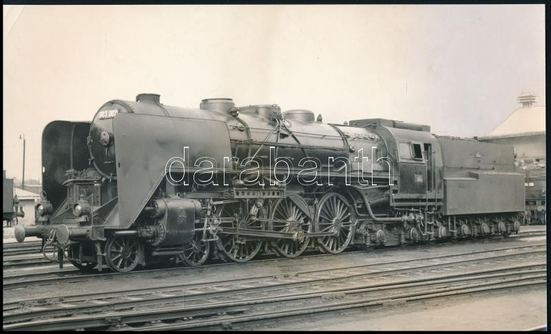 MÁV 303. sorozat, 303.002-es mozdony, sajtófotó, hátoldalon feliratozva, felületén törésnyom, 14×23 cm