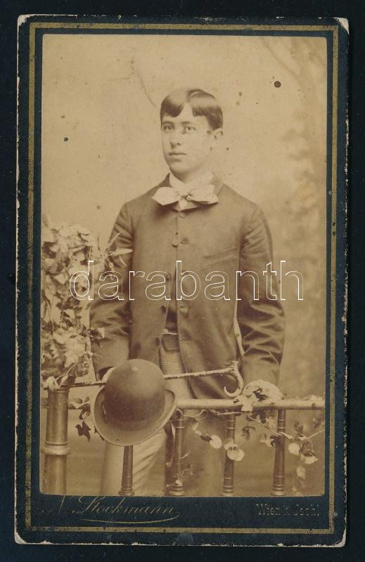 cca 1880 Szép Jenő orvostanhallgató portréja, vizitkártya N. Stockmann bécsi műterméből, a hátoldalon feliratozva, 10,5x6,5 cm