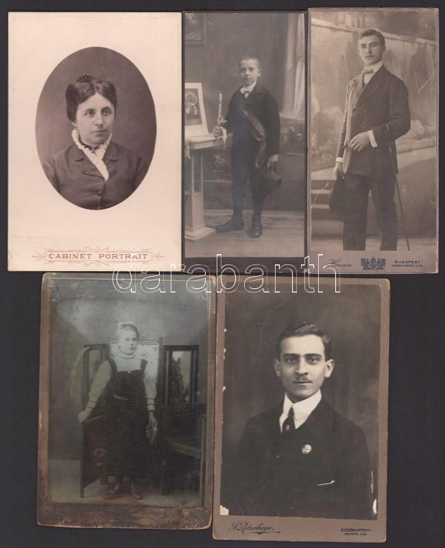 cca 1900 Vegyes keményhátú fotó tétel, 7 db, 16×8 és 16,5×10,5 cm közötti méretekben