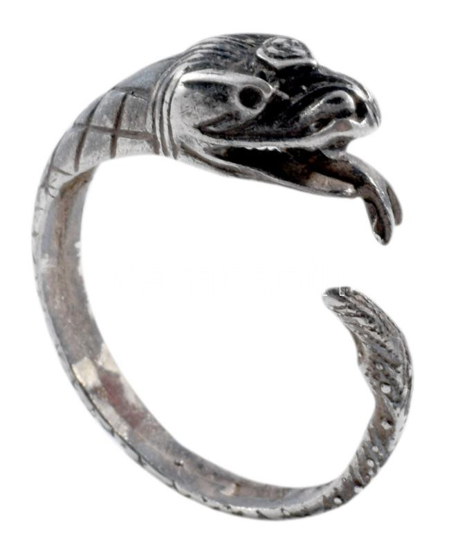Ezüst (Ag) kígyófejes gyűrű, jelzés nélkül, nettó 3,7g