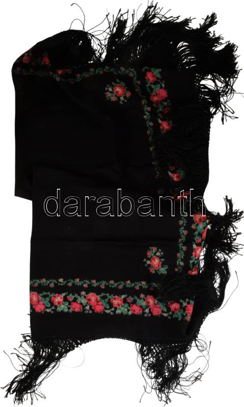 Fekete alapon rojtos-rózsás kendő, 120x120 cm