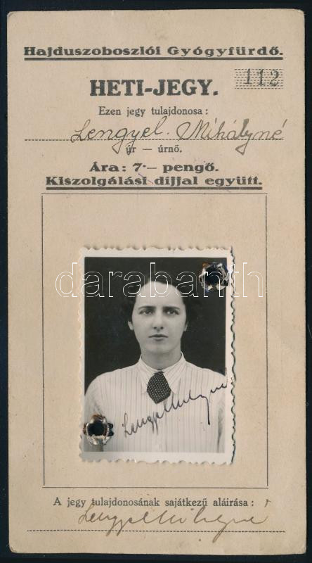 1937 Hajduszoboszlói Gyógyfürdő fényképes heti-jegye
