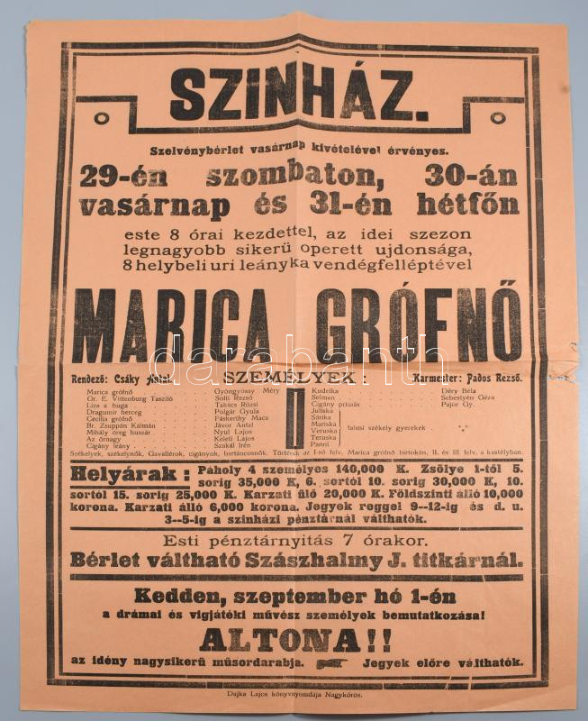 1930 Nagykőrös színházi plakát 31x47 cm