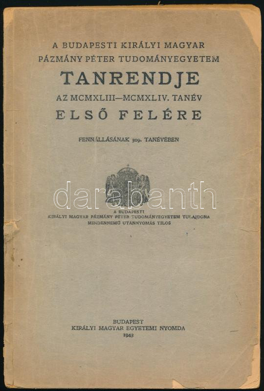1943 Pázmány Péter Tudományegyetem tanrendje 108 p
