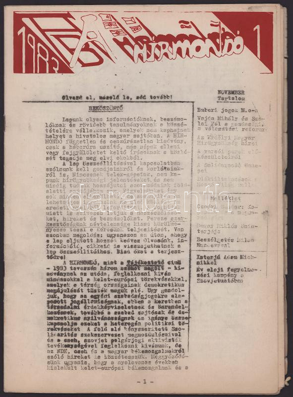 1983 AB A Hírmondó c. szamizdat kiadvány 1., induló. száma, 1983 november 36 p.