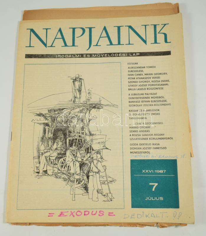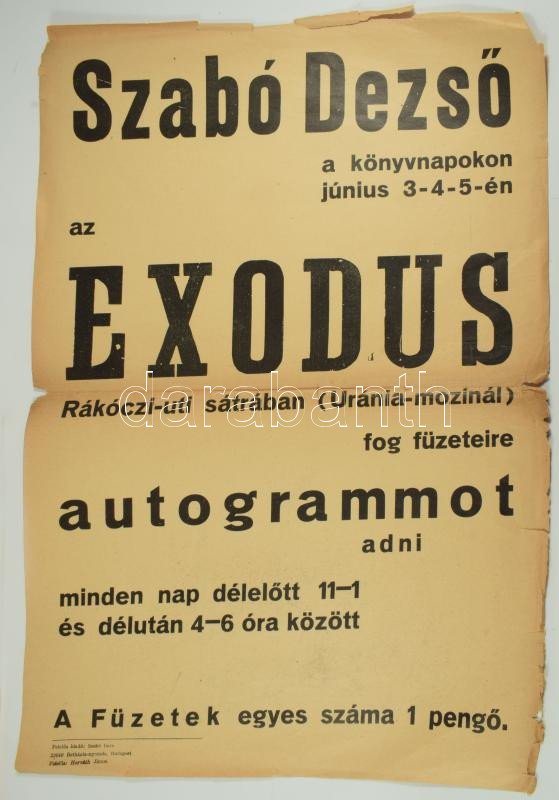 ca 1930 Szabó Dezső Exodus c. könyvének dedikálása plakát 30x45 cm + A műről szóló későbbi újságcikk a szerző Pétervári Ágnes által dedikálva