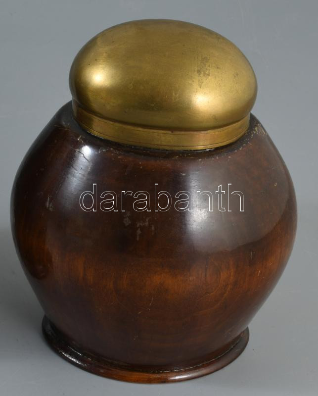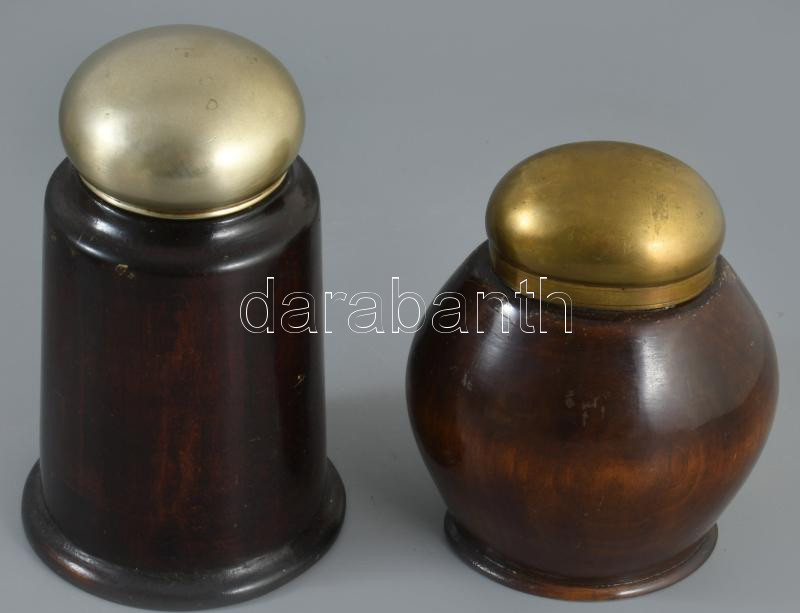 2 darab antik fa tárolóedény, egyik monogramos díszítéssel, m:15 cm alatt