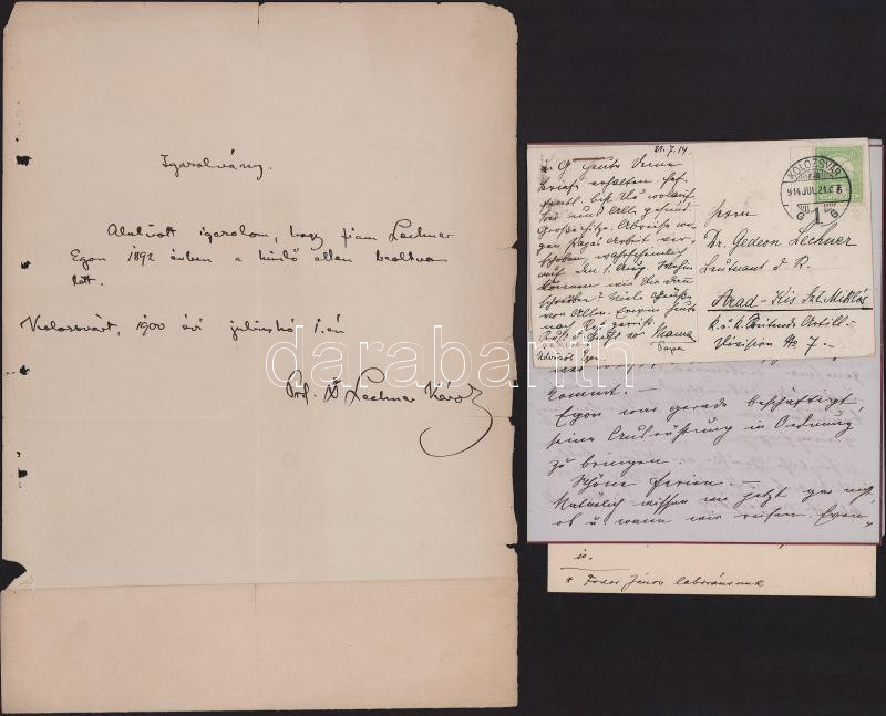 1914 Kismarty-Lechner Egon és Lechner Gedeon levélváltásai. 6 db autográf levél Kolozsvári lakásuk házbéréről, a frontról, stb hozzá egy levél Lechner Károlytól.