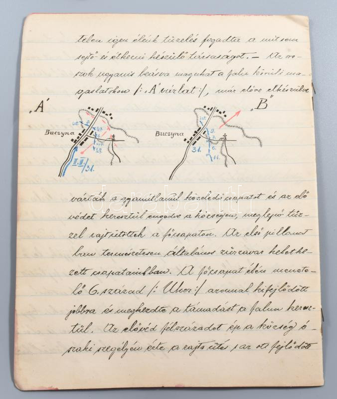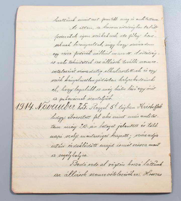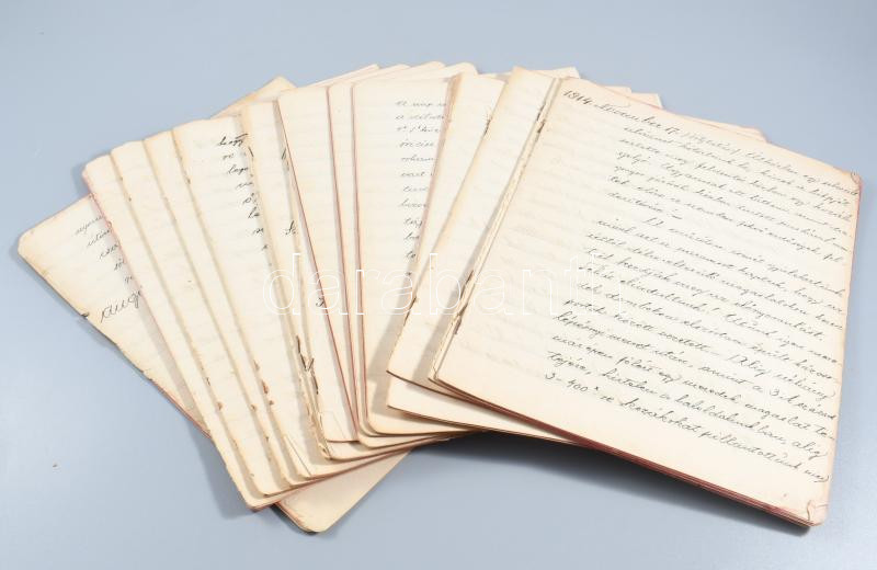 1914 I. világháborús katonai napló a lengyel hadszíntérről, A m. kir. veszprémi 31. honvéd gyalogezred katonájának kb száz oldalas izgalmas dokumentációja.