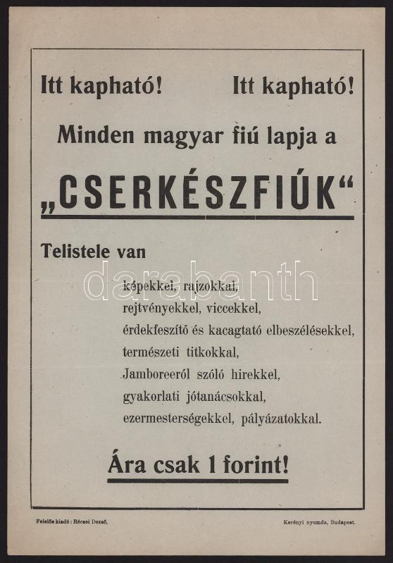 1946 A Cserkészfiúk című újság reklámlapja, szép állapotban, hajtott, 30×20 cm