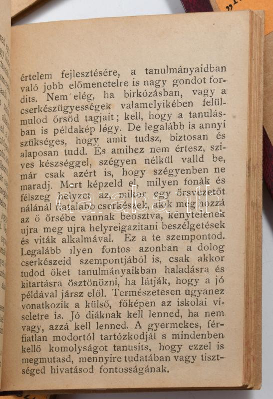 6 db cserkész füzet - Cserkészőrsvezetők könyve; Magyarország földrajza cserkészek számára; A magyar cserkész daloskönyve; A térkép; Tábori munkák; Cserkészfizika és kémia. Kartonált kötésben, jó állapotban.