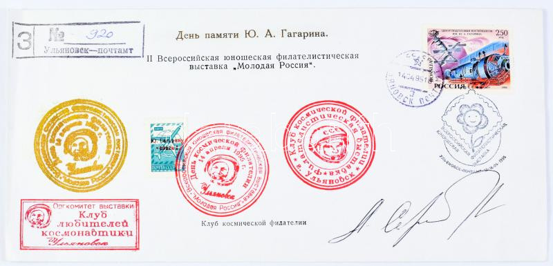 Alekszandr Szerebrov (1944-2013) szovjet űrhajós aláírása emlékborítékon / Signature of Aleksandr Serebrov (1944-2013) Soviet astronaut on envelope