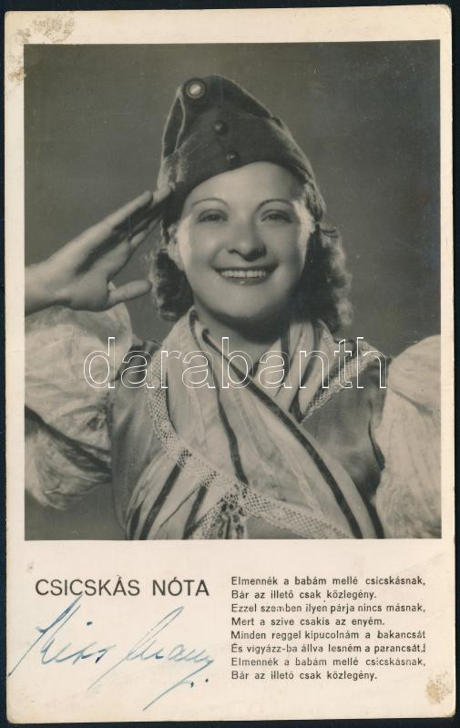 Kiss Manyi (1911-1971) Kossuth- és Jászai Mari-díjas színésznő autográf aláírása