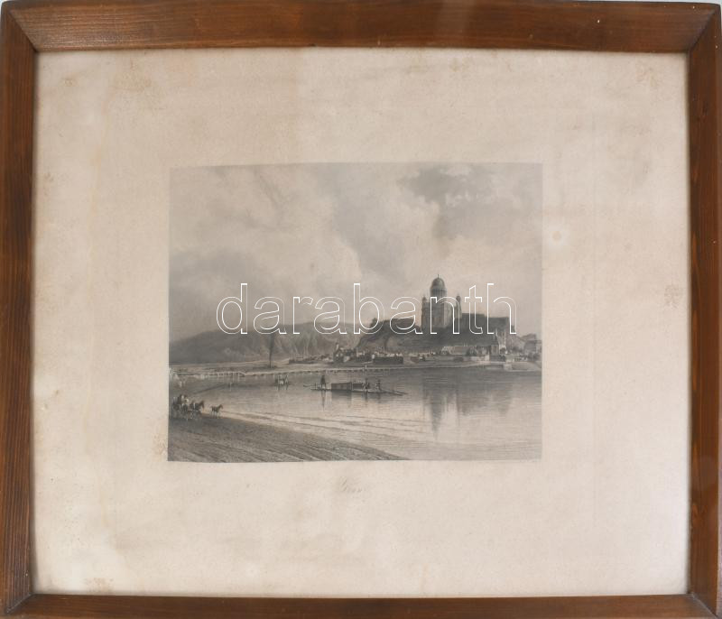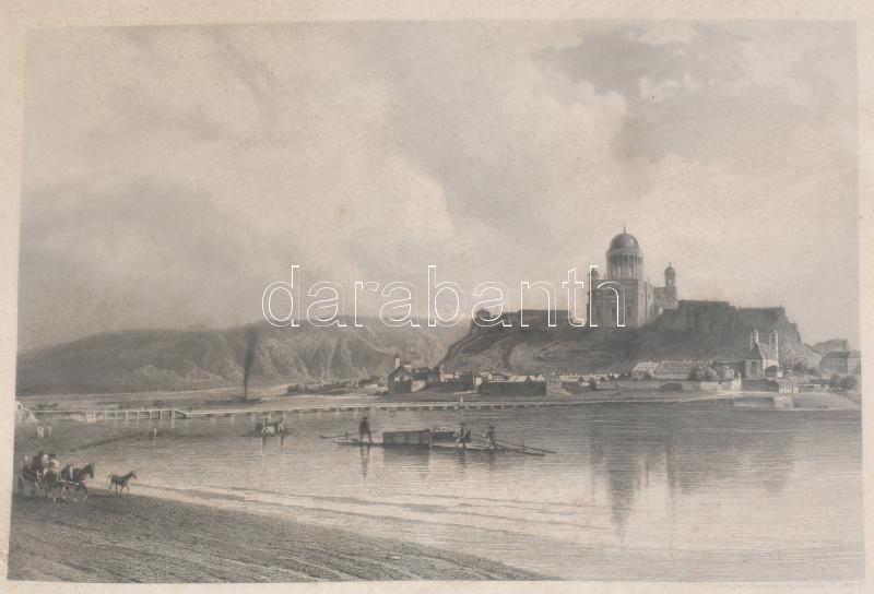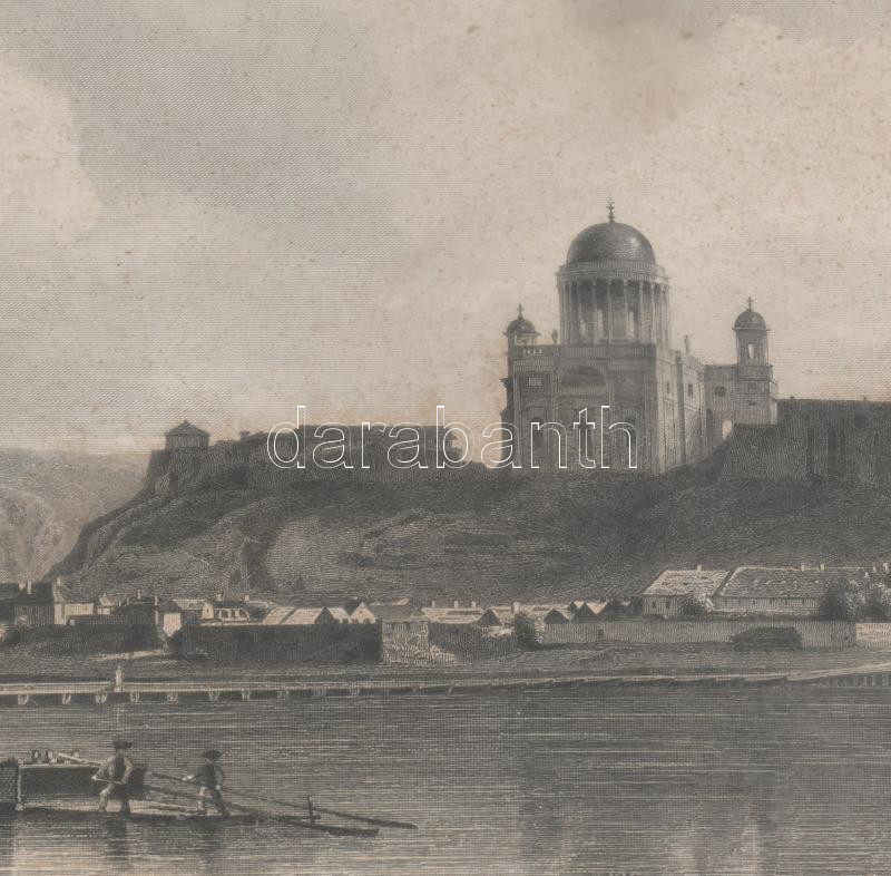 ca 1850 Esztergom látképe. Acélmetszet, papír, jelzett. Lange. 17x26 cm Üvegezett keretben