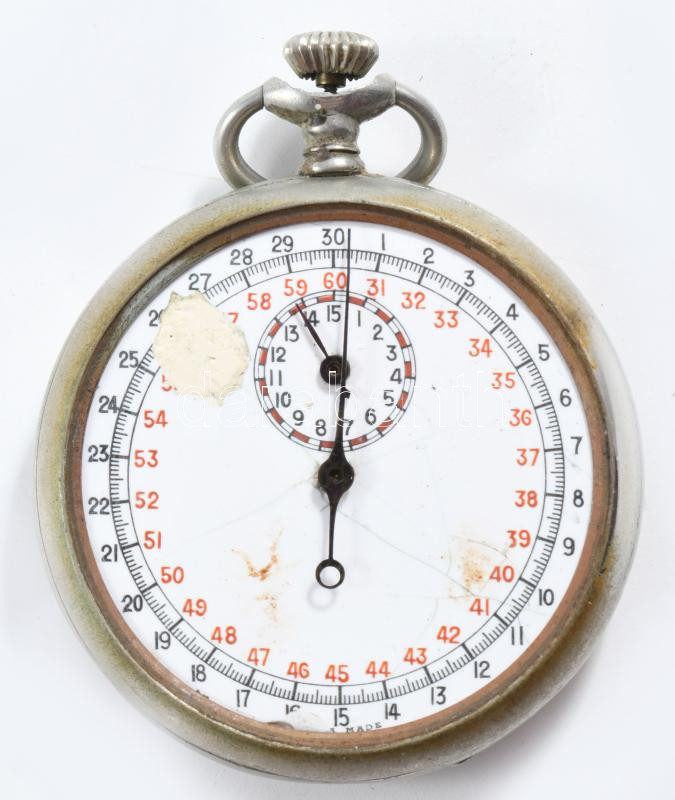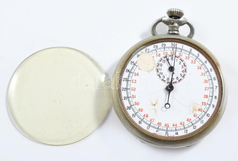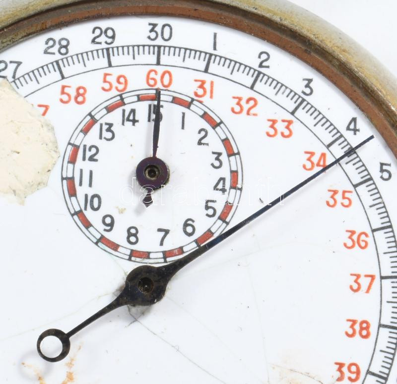 Antik stopper, sérült számlappal, levált üveggel, működik, d: 5 cm