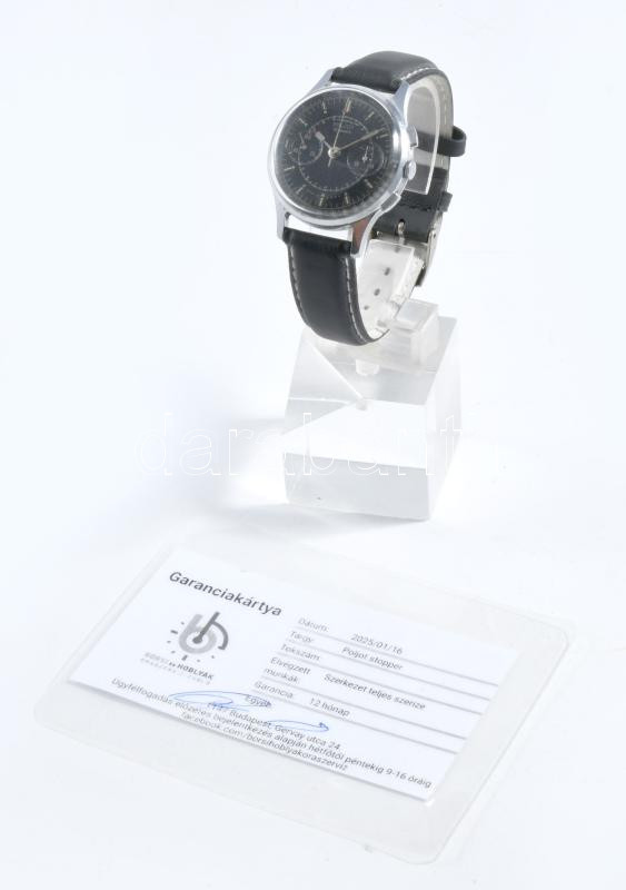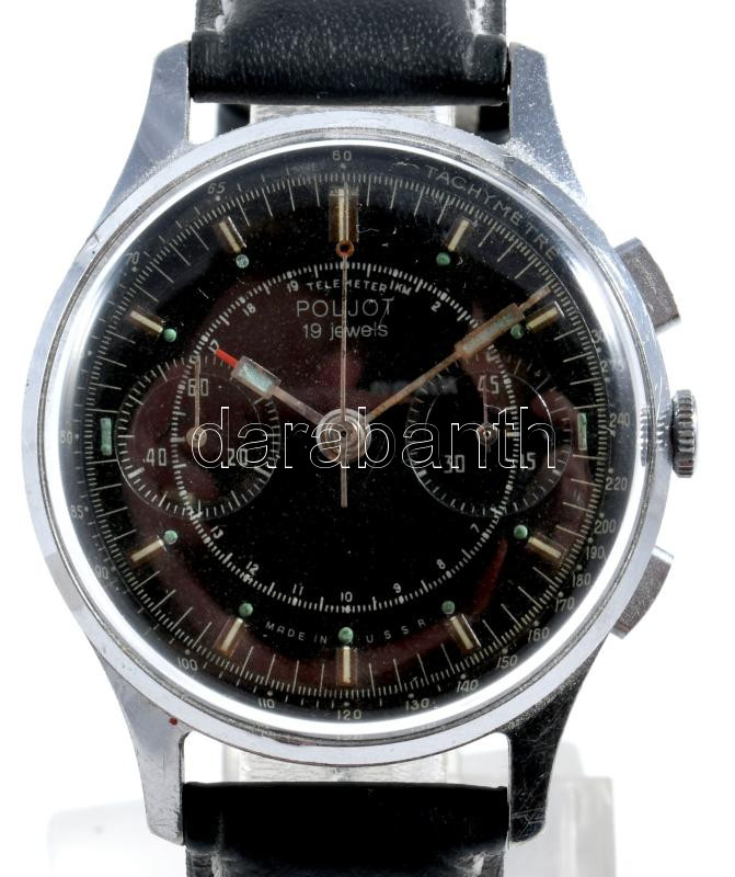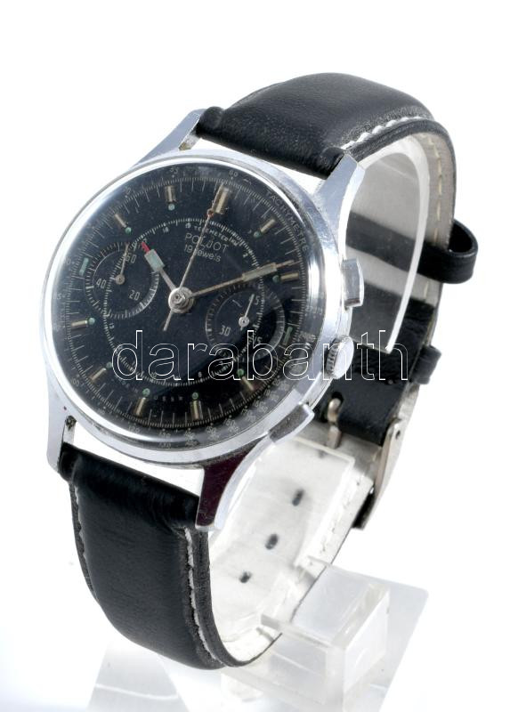 Poljot Strela kronográfos karóra. Kézi felhúzós szerkezet, frissen szervizelt, szép, működő állapotban, új bőr szíjjal. d: 34 mm