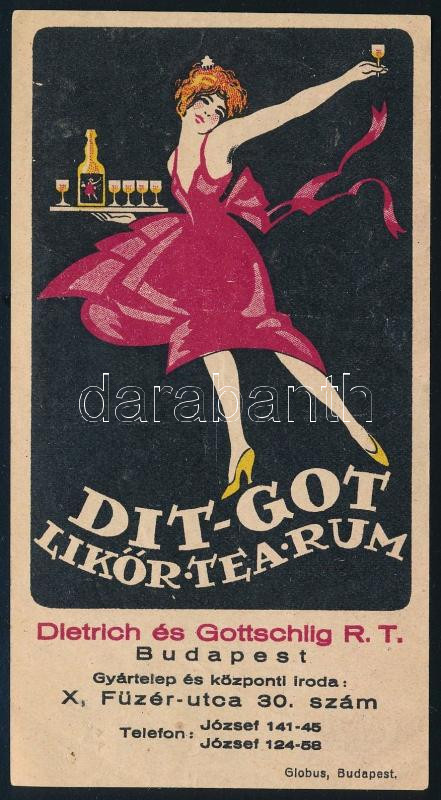 Dit-Got Likőr-Tea-Rum, Dietrich és Gottschlig R.T. számolócédula, hajtásnyommal