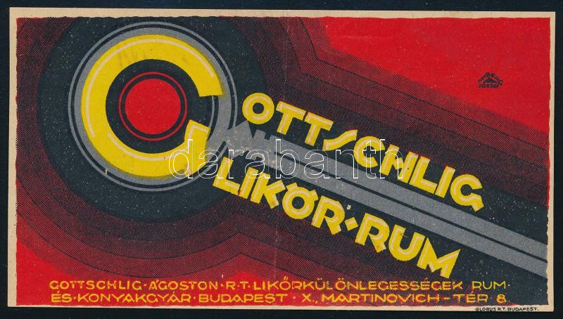 Gottschlig Likőr-Rum számolócédula, Amberg József grafikája, hajtott