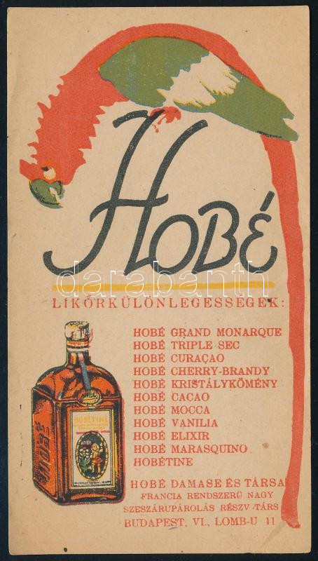 Hobé likőrkülönlegességek Bp. VI. számolócédula