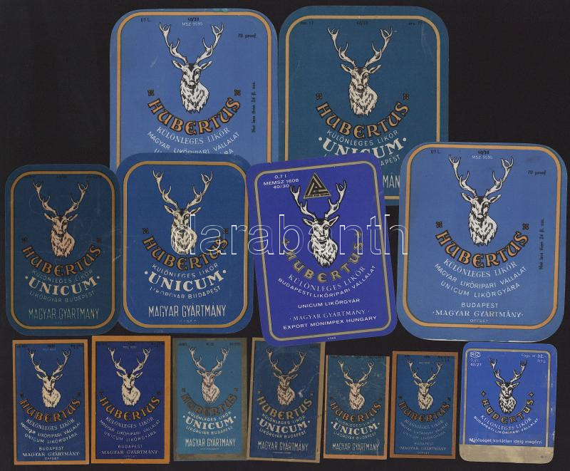 Hubertus italcímke tétel, vegyes méretben, 13 db, vegyes állapotban