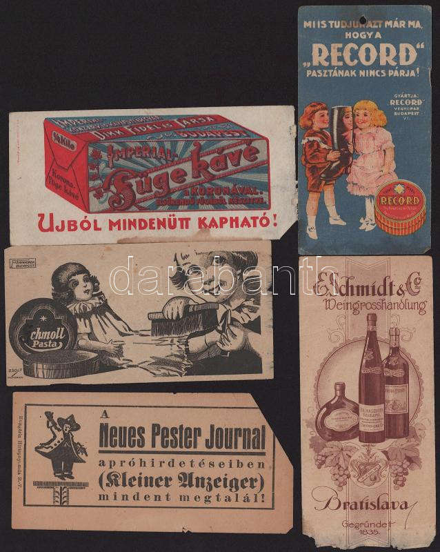Vegyes számolócédula tétel (Altvater Gessler, Tokaji Brandy, Kertész Tódor, stb.), sérültek