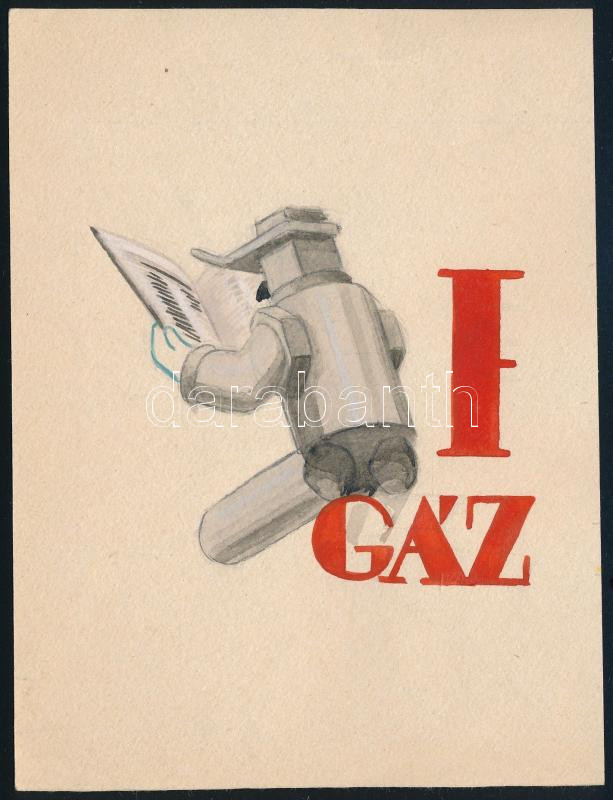 cca 1935 A Bp. Székesfővárosi Gázművek részére készített reklámrajz art deco akvarell, valószínűleg belső kiadványhoz, szép állapotban, 15×11 cm