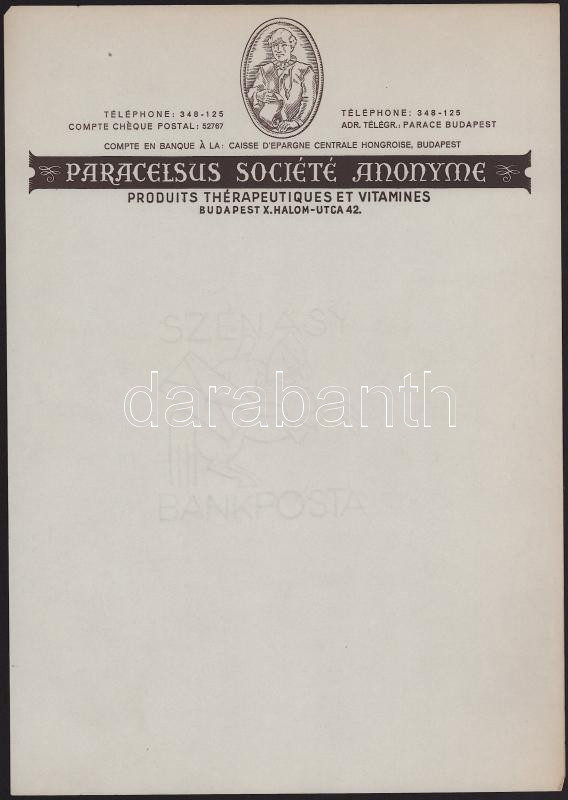 cca 1940 Bp., Paracelsus Société Anonyme produit thérapeutiques et vitamines (vitamin- és gyógyszerkészítmények) kitöltetlen fejléces papírok, 6 db