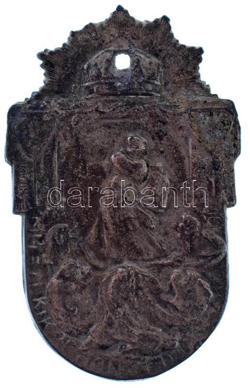 1917. "M. Kir. 21. Honvéd Gyalogezred" fém sérült sapkajelvény (50x31mm) T:VF