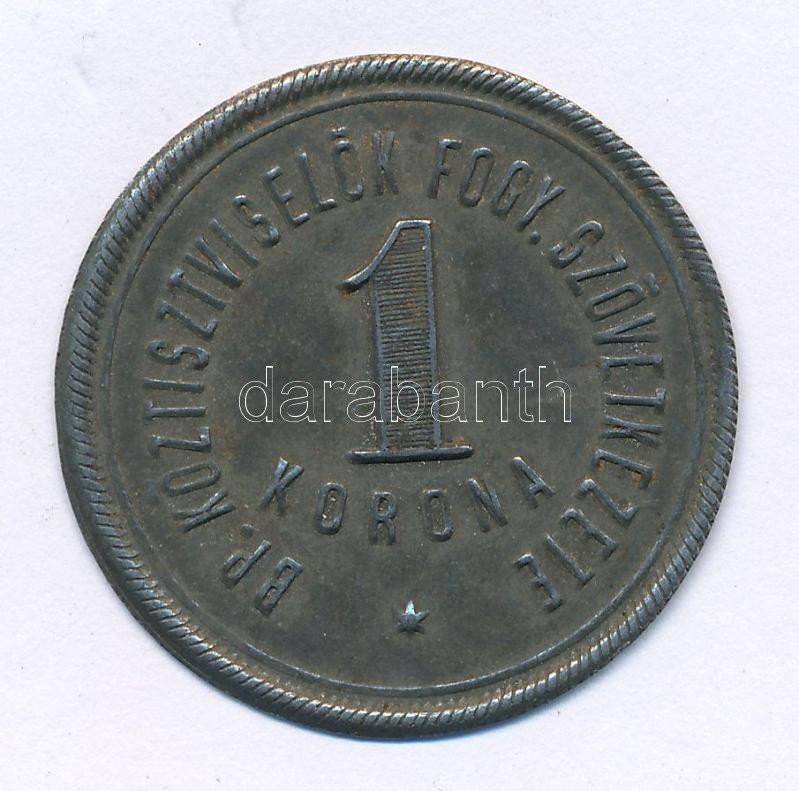 1920 k. 1K "BP. Köztisztviselők Fogy. Szövetkezete" Fe lemez szükségpénz T:XF