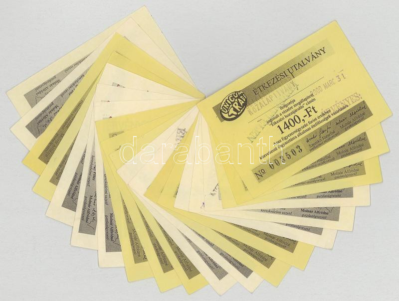 20db-os "Unicum Trade" étkezési utalvány tétel klf címletekkel (200Ft, 500Ft, 1200Ft, 1400Ft), mind bélyegzéssel T:vegyes