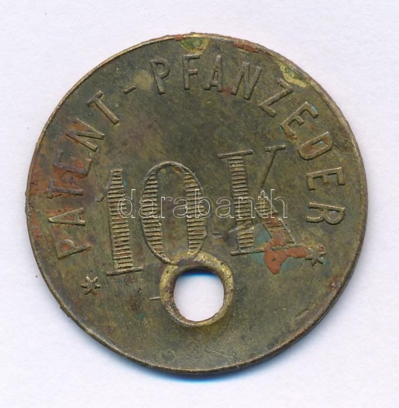 Német Birodalom 1900 k. "10K Patent-Pfanzeder" bronz gyártói védjegy fémlemezen 10kg súlyig mérő mérleghez (29mm) T:VF lyukasztott