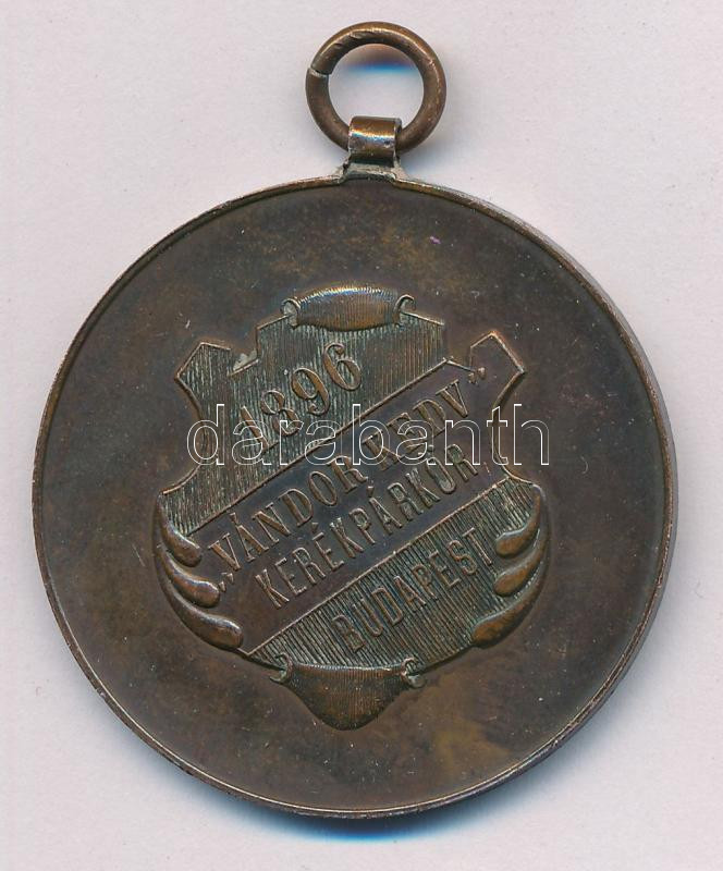 1920 k. "1896 - Vándor Kedv Kerékpárkör - Budapest" bronz kerékpáros díjérem, füllel (38mm) T:XF