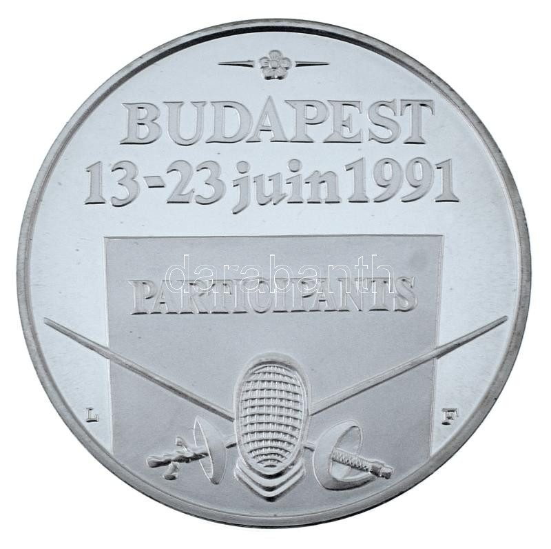 Lebó Ferenc (1960-) 1991. "Participants / XLIV. Championnats du Monde d'Escrime (XLIV. Vívó világbajnokság)" ezüstözött fém résztvevői emlékérem műbőr tokban T:PP