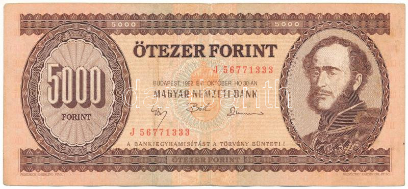 1992. 5000Ft "J 56771333" T:F erős papír Adamo F50
