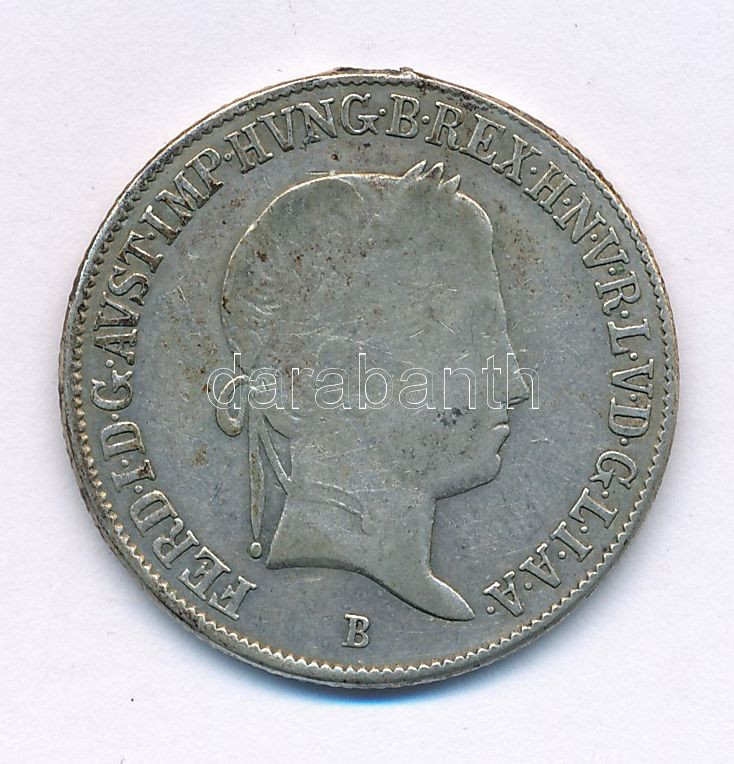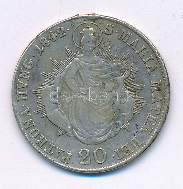 Hungary 1842B 20 Kreuzer Ag "Ferdinand V" (earmark) C:VF patina