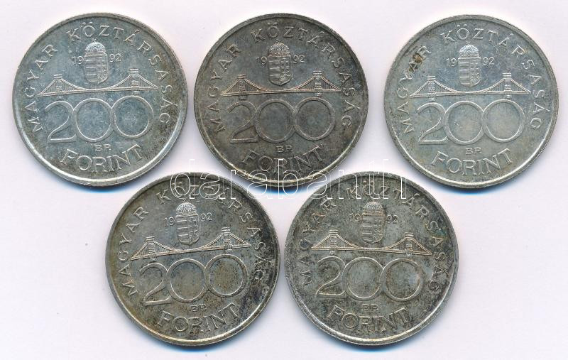 1992. 200Ft Ag "MNB" (5x) T:AU,XF patina