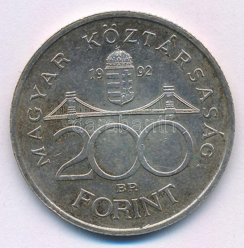 1992. 200Ft Ag "MNB" T:AU,XF patina