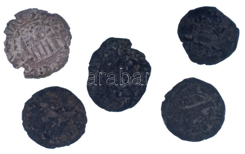 Vegyes, 5db-os középkori és/vagy koraújkori Ag/billon érmetétel T:VF-VG
